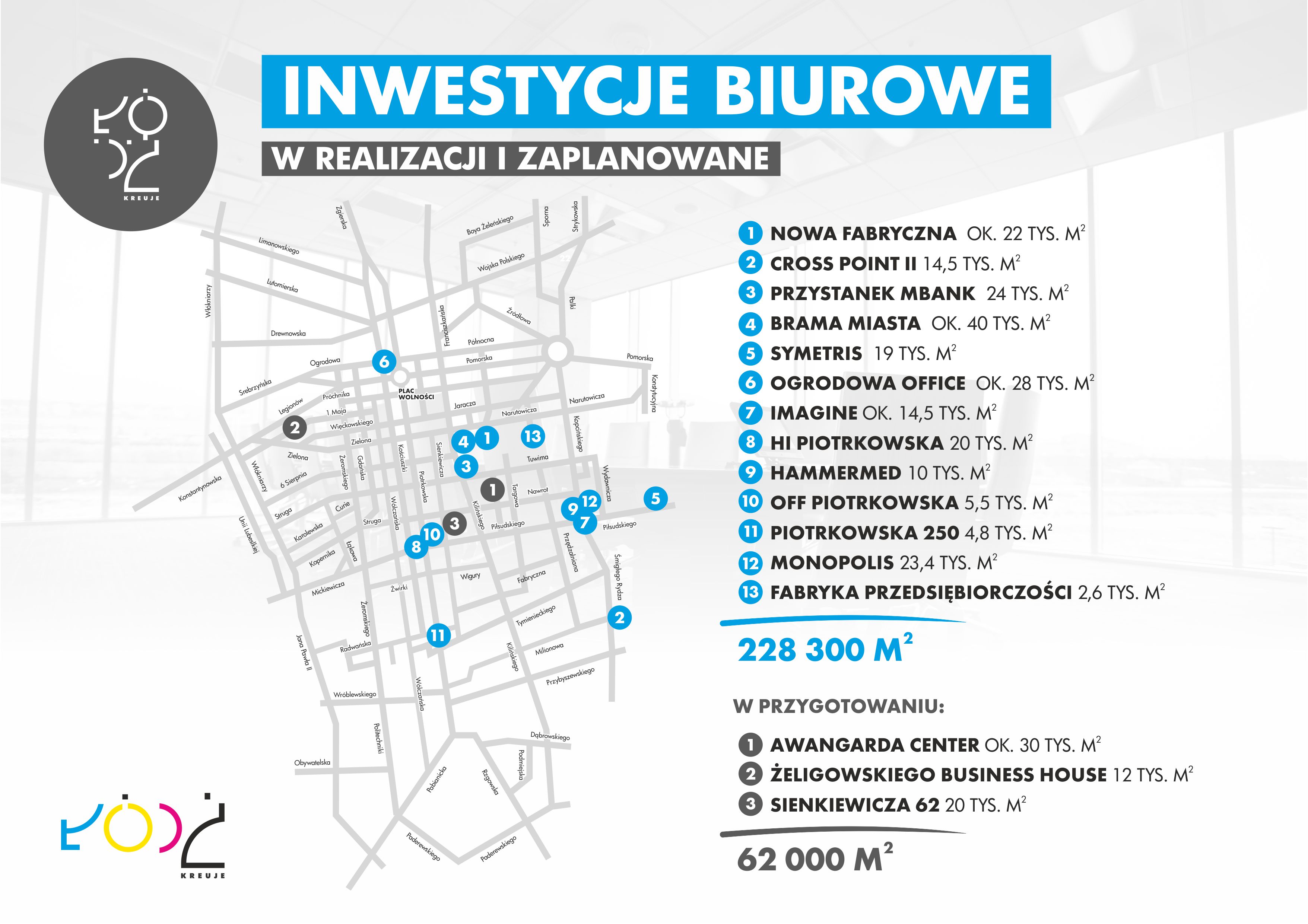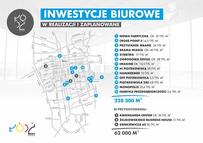Rekordowy jest także rozmiar prowadzonych w mieście inwestycji, który po ogłoszeniu kolejnego projektu - Monopolis - osiągnął poziom 228 300 mkw. nowoczesnych powierzchni biurowych w budowie. Wśród nich najbardziej zaawansowane projekty to Nowa Fabryczna grupy Skanska, która zostanie za miesiąc oddana do użytku oraz Przystanek mBank realizowany przez Ghelamco z Budomalem. To projekty realizowane w Nowym Centrum Łodzi, gdzie rozpoczęła się właśnie jedna z najbardziej wyczekiwanych inwestycji: budowa Bramy Miasta przez Skanska.