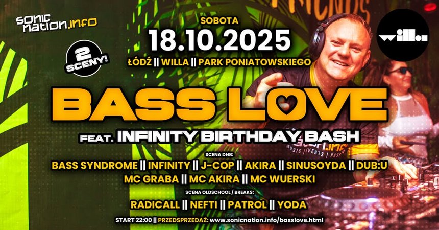 Zapraszamy na urodzinowe BASS LOVE na 2 SCENY! Świętujemy kolejną 18-stke DJ’a INFINITY.