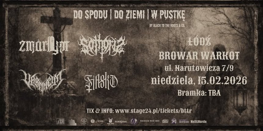 Black to The Roots & Co-Partners zapraszają na pierwszą trasę w tym roku. DO SPODU | DO ZIEMI | W PUSTKĘ promować będzie najnowsze materiały zespołów ZMARŁYM, SOTHORIS, VARNHEIM I FIASKO.