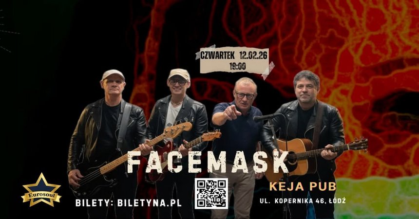 12 lutego Facemask po raz pierwszy zagra w Keja Pub — miejscu, gdzie muzyka nie musi krzyczeć, żeby być słyszana. Tego wieczoru zabrzmią rockowe ballady: opowieści o wyborach, drodze, stracie i nadziei. Piosenki pisane z myślą o sensie, nie o pośpiechu.