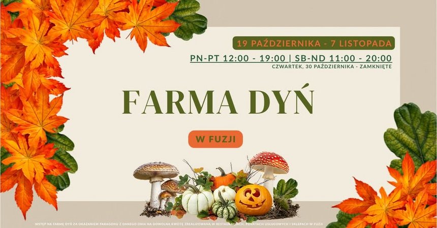 Wstęp na Farmę Dyń za okazaniem paragonu z danego dnia na dowolną kwotę zrealizowaną w restauracjach, punktach usługowych i sklepach w Fuzji.