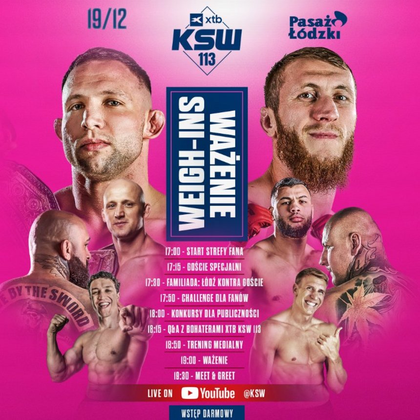 Oficjalną ceremonię ważenia i face to face fani będą mogli obejrzeć również na żywo na kanale YouTube organizacji KSW. Na wadze oraz tradycyjnych spotkaniach twarzą w twarz kibice zobaczą wszystkich uczestników gali.