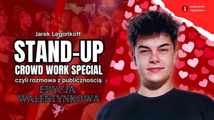 Jarek Legońkoff zaprasza na show, które nigdy się nie powtórzy. Jego crowdwork to stand-up jakiego jeszcze nie widziałeś. To nie kolejny nudny monolog - to spektakl, który powstaje tu i teraz, a komik improwizuje na podstawie tego, co mówi publiczność. Będzie śmiesznie, zaskakująco i jeszcze trochę walentynkowo.