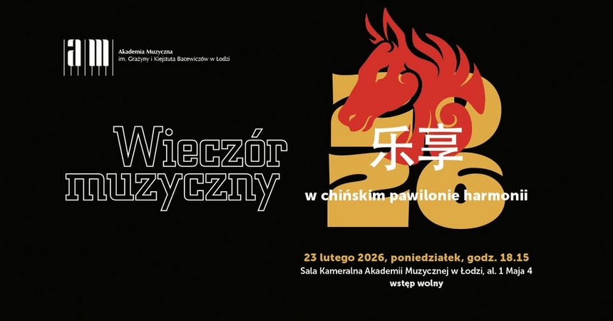 Wieczór muzyczny 乐享 – w chińskim pawilonie harmonii II wpisuje się w obchody Chińskiego Nowego Roku – jednego z najważniejszych świąt na świecie, celebrowanego co roku przez ponad miliard ludzi na wszystkich kontynentach. To czas odnowy, spotkań i radości, którego symboliczny wymiar daleko wykracza poza granice Chin, łącząc społeczności w Azji, Europie i obu Amerykach. W tym roku obchody Chińskiego Nowego Roku przypadają na 17 lutego i trwają piętnaście dni, kończąc się Świętem Latarni. Rok 2026 upływa pod znakiem Konia – symbolu energii i wolności, a także nieustannego ruchu i otwartości na nowe drogi, co nadaje tegorocznym obchodom szczególny, dynamiczny charakter. W samym tytule koncertu wspólne muzykowanie i towarzysząca mu noworoczna radość spotykają się w jednym znaku. W języku chińskim bowiem „乐” (yue/le) to symbol polifoniczny, oznaczający zarówno muzykę, jak i szczęście. Tytułowe „乐享” (yue/le xiang) to zatem „dzielenie się muzyką” oraz „dzielenie się szczęściem”. Niniejszy koncert stanowi zaproszenie do wspólnego doświadczenia, które przypomina, że prawdziwa harmonia rodzi się wtedy, gdy dzielimy się tym, co najpiękniejsze – nie tylko dźwiękami, ale także emocjami i radością, która płynie z muzyki.
